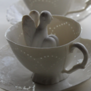 2025. Porcelāns, zelts, koks. Kuldīga, Latvija.
